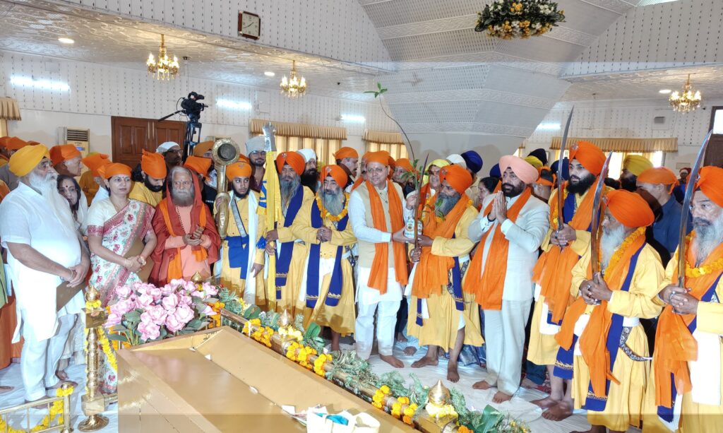 इससे पूर्व दरबार साहब में शब्द कीर्तन का आयोजन किया गया। उपस्थित संगत ने गुरु वाणी का श्रवण किया। आमंत्रित सभी अतिथियों को प्रबंधन कमेटी की ओर से सम्मान का प्रतीक सरोपा भेंट किया गया।