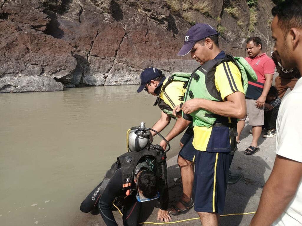 सिंगटाली पुल के पास थाना लक्ष्मण झूला के अंतर्गत नदी किनारे हरियाणा गुड़गाव से आया एक 14 लोगों का एक ग्रुप जो नहाने के लिए नदी किनारे चले गए। ग्रुप का एक व्यक्ति नहाने के दौरान तेज बहाव में आकर डूबने लगा, जिसे बचाने के लिए अन्य युवक भी कूद गया, जो किसी तरह व्यक्ति को बचाने के दौरान किसी बड़े पत्थर पर आ गया। इस घटना पर एसडीआरएफ टीम को सूचित किया गया। एसडीआरएफ के निरीक्षक कविंद्र विंद्र सजवाण ने बताया, बयासी से टीम ने तुरंत पत्थर के ऊपर फंसे युवक अंकित कुमार 30 वर्ष निवासी सीतापुर उत्तर प्रदेश को सकुशल रेस्क्यू किया। गया। डूबे व्यक्ति गुड्डू यादव 26 वर्ष निवासी संभल उत्तर प्रदेश की सर्चिंग के लिए डीप डाइविंग टीम ढाल वाला को बताया गया। डीप डाइविंग टीम द्वारा तुरंत डीप डाइवर किशोर कुमार द्वारा 20 से 25 फीट गहराई में जाकर डूबे युवक का शव बरामद किया। डूबे युवक के शव को राजस्व पुलिस को सुपर्द किया गया।।