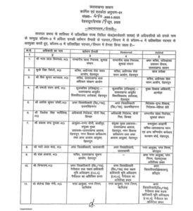 देहरादून: उत्तराखंड की धामी सरकार में गुरुवार को आईएएस और पीसीएस अधिकारियों के बंपर तबादले कर दिए गए। पर्वतीय क्षेत्र के जिलाधिकारियों सहित पीसीएस अधिकारियों के भी तबादले किए गए हैं। चर्चित नगर निगम ऋषिकेश के नगर आयुक्त शैलेंद्र सिंह नेगी को तरक्की देते हुए अपर जिलाधिकारी नैनीताल वित्त एवं राजस्व की पद पर भेजा गया है। ऋषिकेश नगर निगम में गोपाल राम बिनवाल नगर आयुक्त बनाए गए हैं।