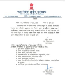 देहरादून: पंचायत चुनाव के लिए बड़ी खबर सामने आई है। राज्य चुनाव आयुक्त सुशील कुमार ने शनिवार को राजधानी में उत्तराखंड में पंचायत चुनाव की अधिसूचना जारी करते हुए चुनाव कार्यक्रम जारी किया। उन्होंने बताया कि हरिद्वार जनपद को छोड़कर शेष 12 जनपदों में दो चरणों में मतदान होगा। पहले चरण का मतदान 10 जुलाई और दूसरे चरण का मतदान 15 जुलाई को होगा।