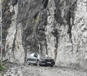 जोशीमठ के पाताल गंगा क्षेत्र में पहाड़ी से भारी भरकम पत्थर वहां से गुजर रही एक कार के ऊपर जा गिरा। इस हादसे में एक महिला की मौत हो गई, दो लोग घायल हो गए।