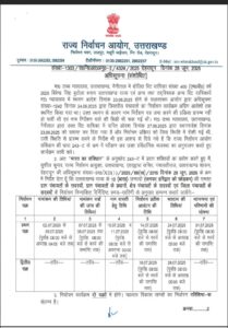 राज्य निर्वाचन आयोग उत्तराखंड की ओर से उत्तराखंड में प्रस्तावित त्रिस्तरी पंचायत चुनाव की शनिवार को अधिसूचना जारी कर दी गई। हरिद्वार को छोड़कर 12 जनपदों में पंचायत के चुनाव दो चरणों में होंगे। प्रथम चरण का मतदान 24 जुलाई और द्वितीय चरण का मतदान 28 जुलाई को होगा। राज्य निर्वाचन आयुक्त सुशील कुमार की ओर से यह अधिसूचना जारी की गई।