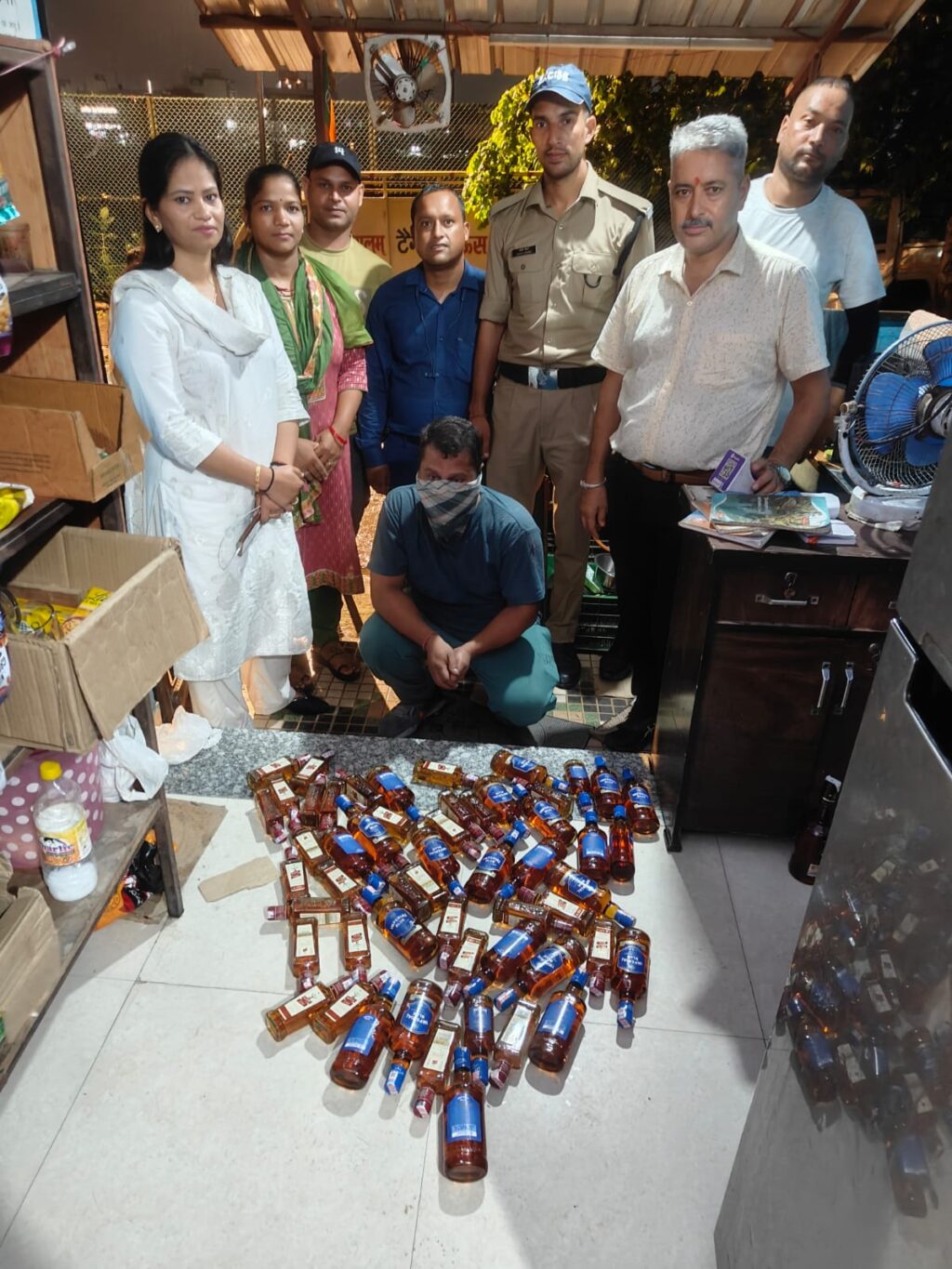 टीम में आबकारी निरीक्षक प्रेरणा बिष्ट, उप आबकारी निरीक्षक उमराव राठौर, प्रधान आबकारी सिपाही, अर्जुन सिंह, आशीष प्रकाश, हेमंत, राकेश, दीपा ,आशीष चौहान सम्मिलित रहे।
