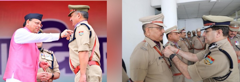 पुलिस मुख्यालय के अनुसार सेवा के आधार पर उत्कृष्ट प्रदर्शन करने वाले देहरादून के पुलिस उपाधीक्षक संदीप नेगी और आरक्षित चालक दिनेश सिंह को डीजीपी दीपम सेठ ने डीजीपी डिस्क गोल्ड पदक से सम्मानित किया।