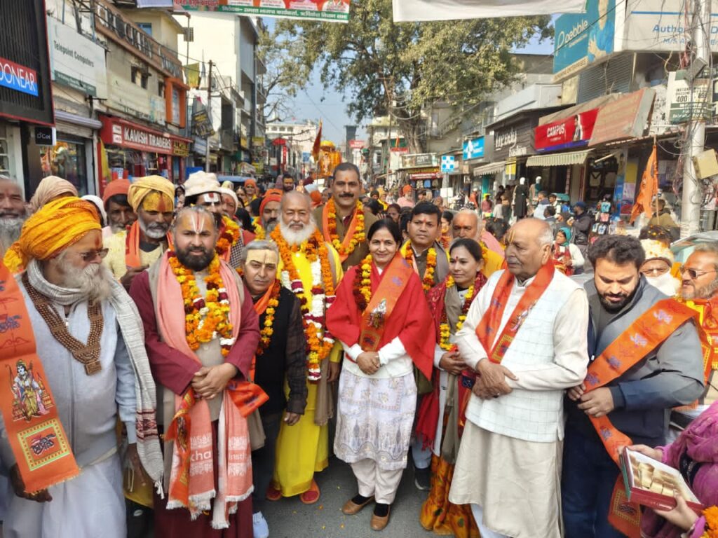 शनिवार को आयोजित शोभायात्रा माया कुंड रामानंद संत सेवा आश्रम से निकाली गई। श्री भरत मंदिर संस्कृत महाविद्यालय, नेपाली संस्कृत महाविद्यालय, श्री दर्शन महाविद्यालय, कृष्ण कुंज संस्कृत महाविद्यालय, निर्मल आश्रम सहित कई अन्य विद्यालयों छात्र-छात्राओं ने शोभायात्रा में भाग लिया। रामानंद संत सेवा आश्रम परिसर में यात्रा पहुंचने पर जगद्गुरु द्वाराचार्य स्वामी दयाराम योगानंदाचार्य महाराज की अध्यक्षता में विराट संत सम्मेलन आयोजन किया गया। जिसमें कार्यक्रम का संचालन तुलसी मानस मंदिर के महंत रवि प्रपन्नाचार्य महाराज ने किया। जगतगुरु रामानंदाचार्य महाराज की जयंती पर सभी संतो ने विचार व्यक्त किऐ।