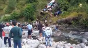 अल्मोड़ा: उत्तराखंड के अल्मोड़ा में बड़ा सड़क हादसा हुआ है। मार्चुला के पास एक बस खाई में गिर गई है। प्रारंभिक जानकारी के अनुसार हादसे में 38 लोगों की मौत हो गई है। जबकि कई लोग घायल हुए हैं। आधिकारिक रूप से अभी तक 36 लोगों के मरने की पुष्टि की गई है। मौके पर राहत एवं बचाव कार्य चलाया जा रहा है। एसडीआरएफ की टीम ने मौके पर रेस्कयू कर घायल यात्रियों को बाहर निकाला, गंभीर रूप से घायलों तीन लोगों को को एयर लिफ्ट कर एम्स ऋषिकेश लाया गया है।