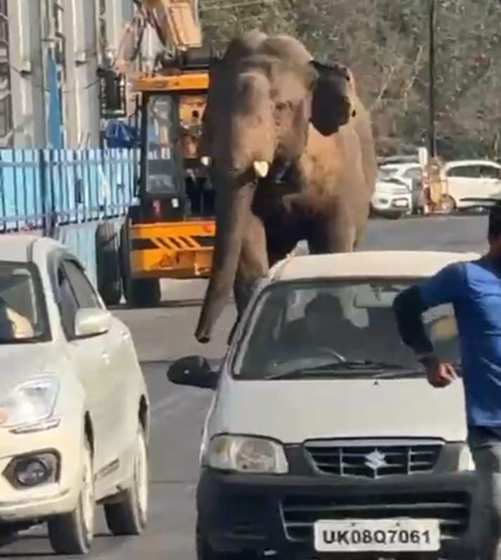 राजाजी नेशनल पार्क की गोहरी रेंज के जंगल से निकलकर आए एक हाथी ने बैराज और एम्स मार्ग पर जमकर कोहराम मचाया। ट्रैफिक के बीच हाथी को दौड़ लगाते देखा आसपास मौजूद लोगों की सांस अटक गई सड़क पर खड़े एक बुजुर्ग को हाथी ने टक्कर मारकर घायल कर दिया। इसके बाद यह हाथी बैराज कॉलोनी में घुस गया। जहां उसने काफी देर तक उत्पाद मचाया। भीड़ को देखकर हाथी जंगल की ओर चला गया।