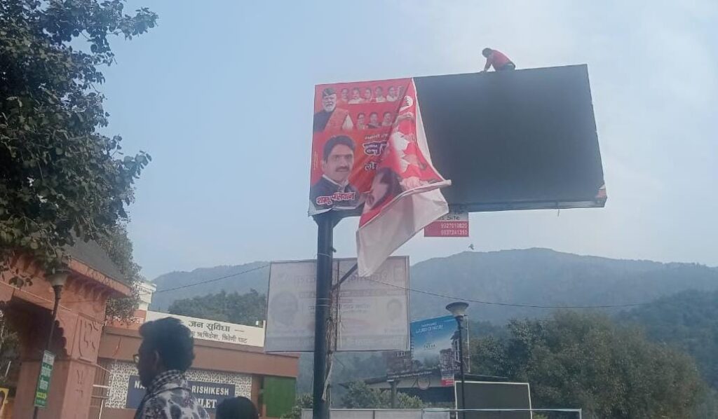 उत्तराखंड में शहरी विकास अनुभव की ओर से निकाय चुनाव की घोषणा करने के साथ ही प्रशासन की ओर से आदर्श आचार संहिता लागू कर दी गई। मंगलवार को प्रशासन एक्शन मोड में आया। नगर निगम क्षेत्र की सड़कों और गलियों में लगे तमाम राजनीतिक दलों से संबंधित दावेदारों के शुभकामना होर्डिंग हटा दिए गए। इन होर्डिंग के कारण पूरा शहर बदरंग हो गया था। आचार संहिता ने एक ही दिन में शहर की सूरत को बदल दिया।