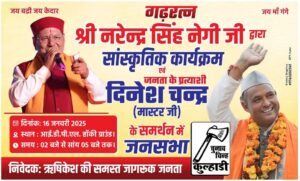 स्वयं को जनता का प्रत्याशी प्रचारित कर निर्दलीय प्रत्याशी के रूप में ऋषिकेश नगर निगम मेयर का चुनाव लड़ रहे दिनेश चंद्र मास्टर जी की टीम नहले पर दहला साबित हो रही है। सोशल मीडिया प्लेटफॉर्म पर राष्ट्रीय दलों को पीछे छोड़ने के बाद इस टीम ने अब उत्तराखंड की माटी में रचे बसे नामी गढ़ कलाकारों को चुनाव प्रचार में उतरने की तैयारी की है। इसमें एक बड़ा नाम गढ़ रत्न लोक गायक नरेंद्र सिंह नेगी का नाम शामिल है। 16 जनवरी को गढ़ रत्न नरेंद्र सिंह नेगी आईडीपीएल हॉकी मैदान में सांस्कृतिक कार्यक्रम की प्रस्तुति देंगे और दिनेश चंद्र मास्टर जी के समर्थन में यहां जनसभा का भी आयोजन होगा।