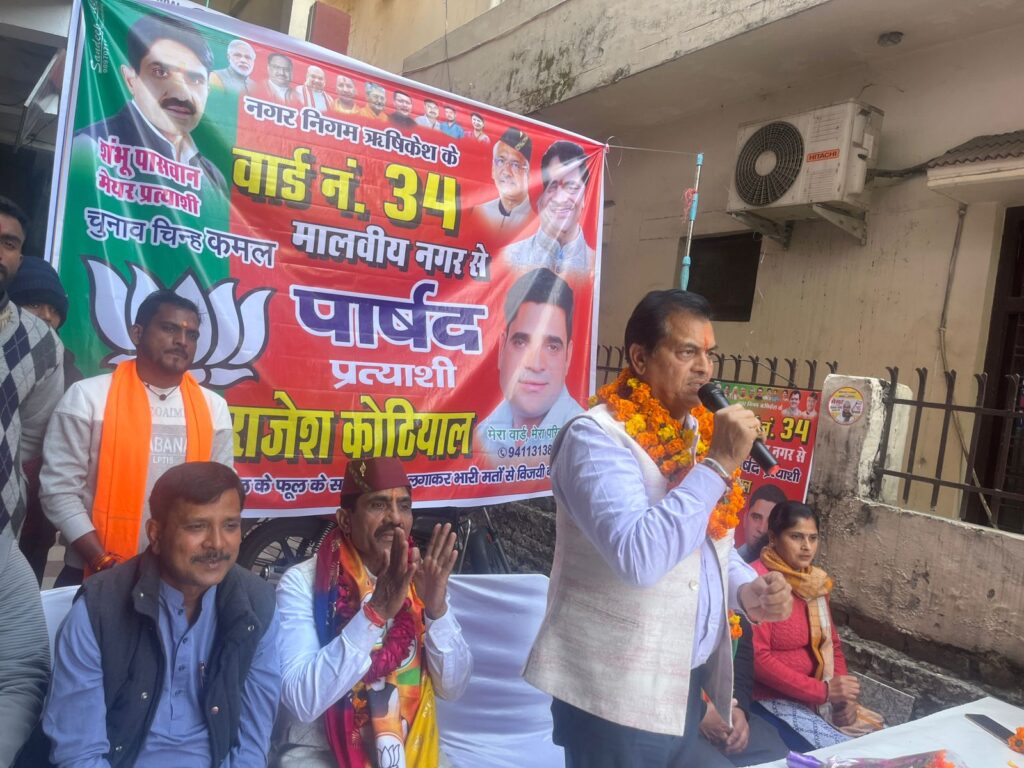 इस मौके पर मंडल अध्यक्ष सुरेंद्र कुमार, पार्षद प्रत्याशी, शिवा प्रजापति, राहुल कश्यप, रेहा ध्यानी, विजय बडोनी, मंजू देवी, राजेश कोठियाल, ममता रतूड़ी, पुनीता भंडारी आदि उपस्थित रहे।