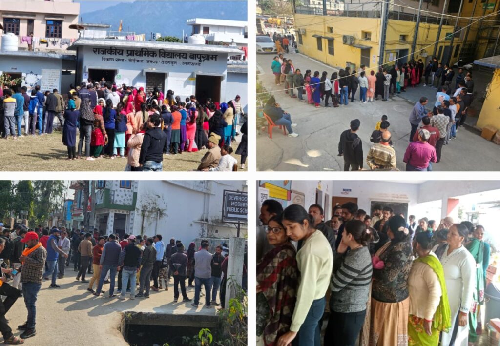 नगर के सभी 40 वार्डों में बनाए गए 86 वोटो में गुरुवार की सुबह शांतिपूर्ण मतदान शुरू हुआ। शुरुआती घंटे में मतदान की गति भले ही धीमी रही, मगर उसके बाद मतदान में गति आ गई। विशेष रूप से नगर निगम क्षेत्र में शामिल हुए देहात क्षेत्र के वार्डों में मतदाताओं के भीतर अपार उत्साह बना हुआ है। अमित ग्राम, मंसा देवी, मालवीय नगर, टीएचडीसी, इंदिरा नगर, मीरा नगर, बापू ग्राम,शिवाजी नगर, भारत मंदिर इंटर कॉलेज, ज्योति विशेष विद्यालय, आशुतोष नगर, आदर्श ग्राम से जुड़े सभी वार्डों में लंबी लाइन देखी गई।