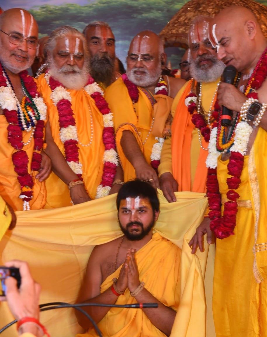 संतो ने आशीर्वाद स्वरूप युवराज स्वामी गोपालाचार्य को सनातन धर्म एवं राष्ट्र सेवा की मंगलकामनाएं प्रदान की।