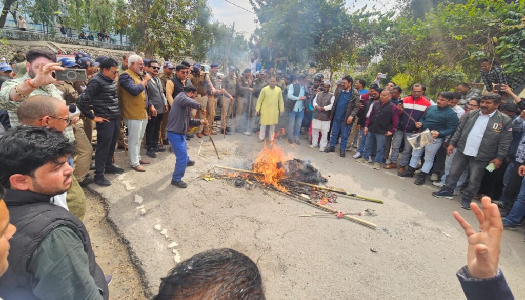 ब्यूरो, ऋषिकेश: अपने बयानों को लेकर हमेशा विवादों में घिरे रहने वाले उत्तराखंड के कैबिनेट मंत्री प्रेमचंद अग्रवाल एक बार फिर लोगों के निशाने पर हैं। आरोप है कि विधानसभा के भीतर उन्होंने पर्वतीय समाज के लोगों को गाली दी। इसके खिलाफ पूरे उत्तराखंड में लोगों के भीतर गुस्सा देखा जा रहा है। ऋषिकेश में उत्तराखंड स्वाभिमान मोर्चा के बैनर तले लोगों ने मंत्री के पुतले की शव यात्रा निकाली। बैराज रोड स्थित उनके कैंप कार्यालय के समक्ष जमकर प्रदर्शन करते हुए पुतले का दहन किया।