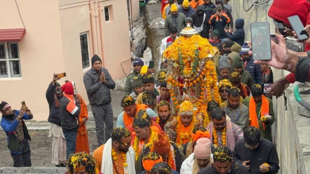 केदारनाथ: भगवान श्री केदारनाथ जी की पंचमुखी उत्सव मूर्ति आज तीसरे पड़ाव गौरीकुंड से चलकर पैदल मार्ग से श्री केदारनाथ धाम पहुंच गयी है।